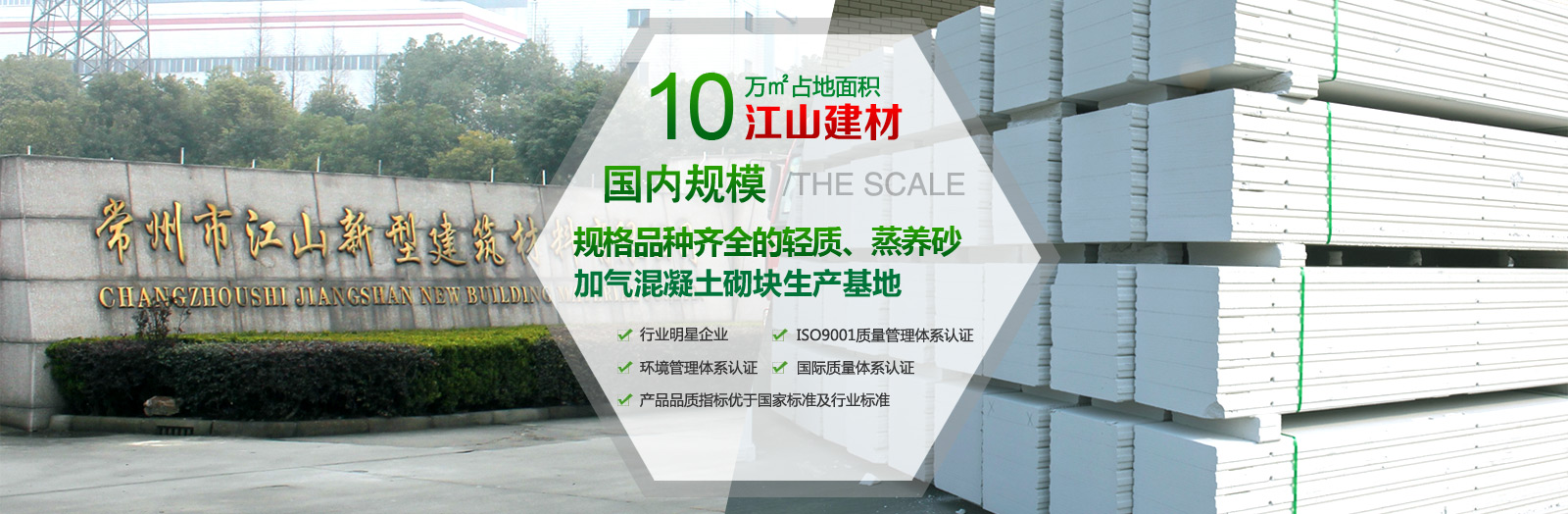 常州市江山新型建筑材料有限公司是江蘇地區AAC(蒸壓砂加氣混凝土)砌塊、板材集研發、生產、銷售為一體的規模性企業。地處長三角經濟帶樞紐—常州市經濟開發區,距離G42高速出口僅 3公里,交通便利,物流發達。公司占地13.5萬平方米,現有員工300多人,其中研發技術人員占比35%,為我們產品的生產研發提供堅實的保障。公司更配備有專業的銷售、售后及運輸團隊,致力于為客戶提供^優質的服務。公司分兩期總投資3億元人民幣,一期二期已形成80萬方蒸壓砂加氣混凝土砌塊及35萬方蒸壓砂加氣混凝土板材的年產能。